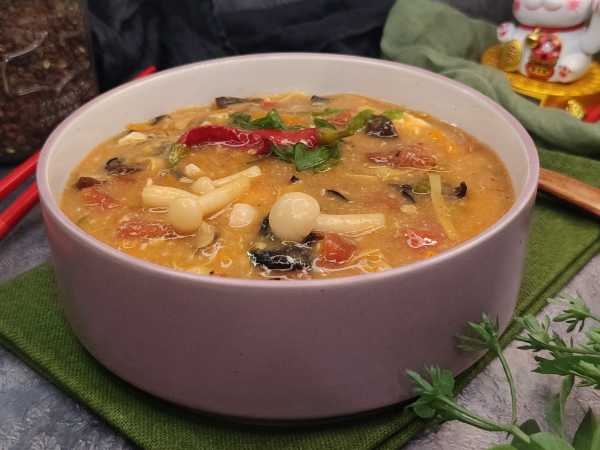 Соберите ингредиенты для приготовления кисло-острого китайского супа.