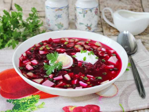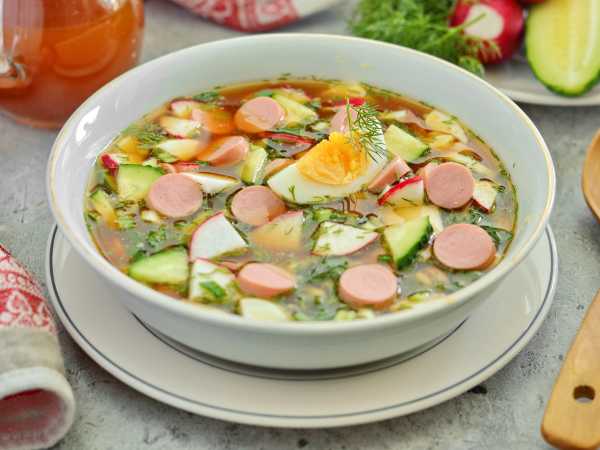 Соберите ингредиенты для приготовления классического холодника с колбасой.