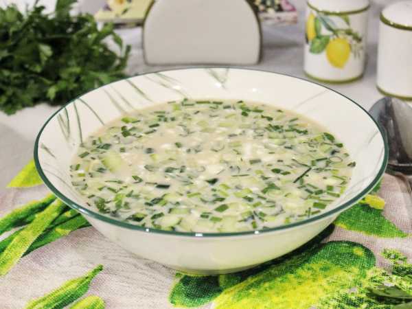 Соберите ингредиенты для приготовления окрошки на кефире с квасом и колбасой.