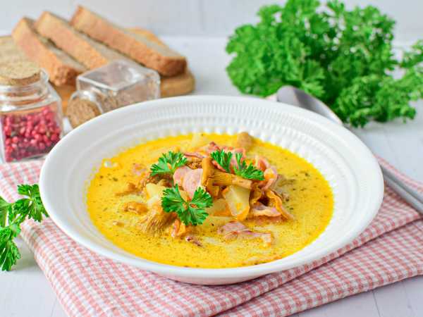 Чтобы приготовить суп с лисичками и беконом на сливках, подготовьте необходимые ингредиенты по списку. Свежие лисички необходимо предварительно отварить в ...