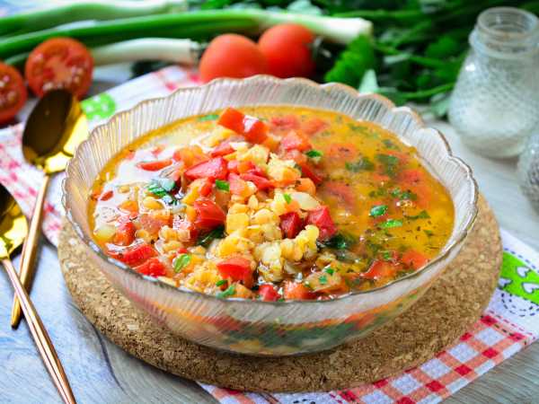 Соберите все ингредиенты для приготовления супа с чечевицей и помидорами.