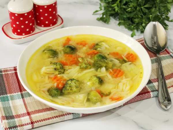 Соберите ингредиенты для приготовления супа с брюссельской капустой и брокколи.