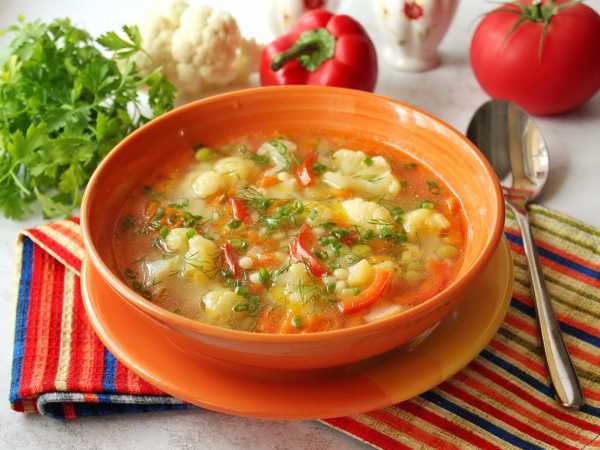 Соберите по списку все ингредиенты для приготовления куриного крем-супа с цветной капустой.