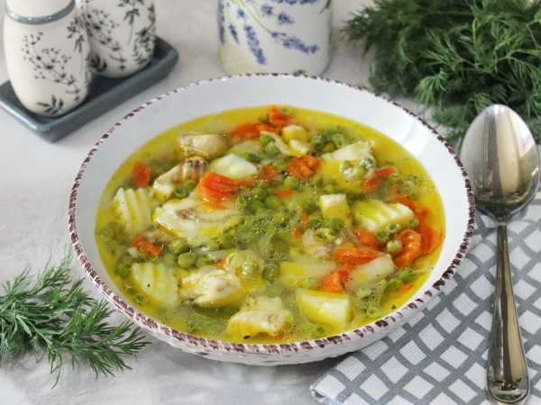Продукты для приготовления горохового супа с рыбными консервами - перед вами.