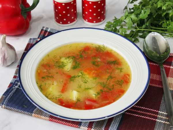 Соберите ингредиенты для приготовления супа с рисом и болгарским перцем.