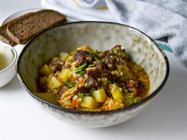 Соберите продукты для приготовления кулеша в мультиварке. Картофель, лук и морковь вымойте и почистите. Пшено промойте до прозрачной воды, затем ...
