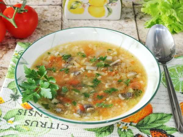 Возьмите ингредиенты для приготовления азиатского супа из шампиньонов с рисом.