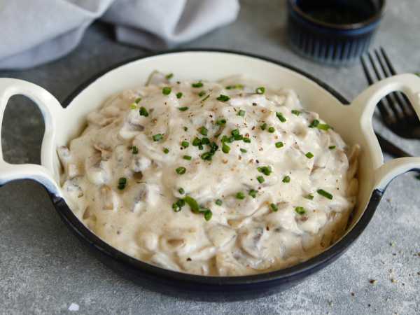 Соберите ингредиенты для приготовления лингвини с грибами и сливками.