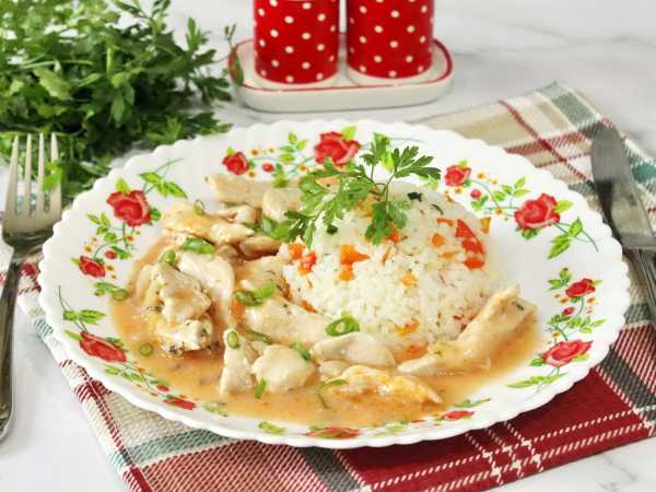 Соберите ингредиенты для приготовления риса с куриной подливой.