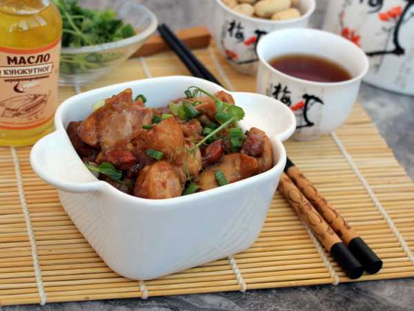 Для острой курицы гунбао с арахисом подготовьте ингредиенты по списку к рецепту.