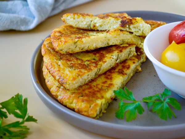Соберите продукты для приготовления творожной лепешки с сыром на сковороде. Творог должен быть сухой - чтобы не добавлять много муки. ...