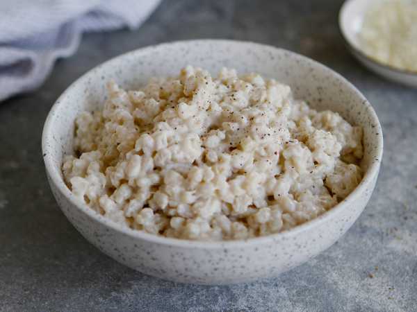 Соберите все продукты по списку и приступим к приготовлению перловки со сливками и сыром.