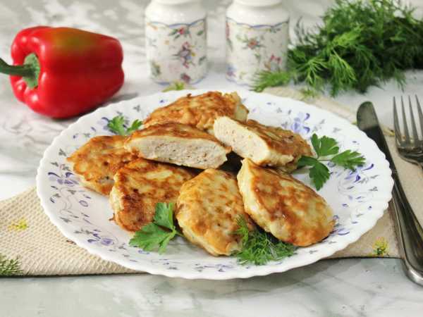 В миску с куриным фаршем положите мелко нарезанный репчатый лук, натертую ...