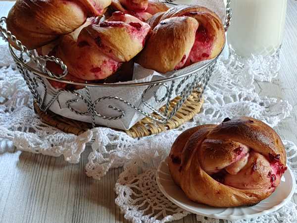 Соберите ингредиенты для приготовления сдобных булочек с повидлом из дрожжевого теста.
