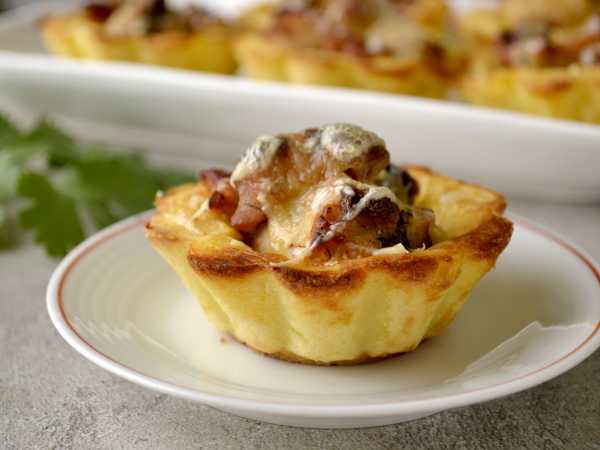 Продукты для приготовления тарталеток из картофеля с начинкой - перед вами.