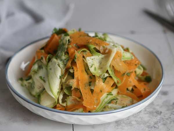 Продукты для приготовления салата из свежей моркови и кабачка - перед вами.