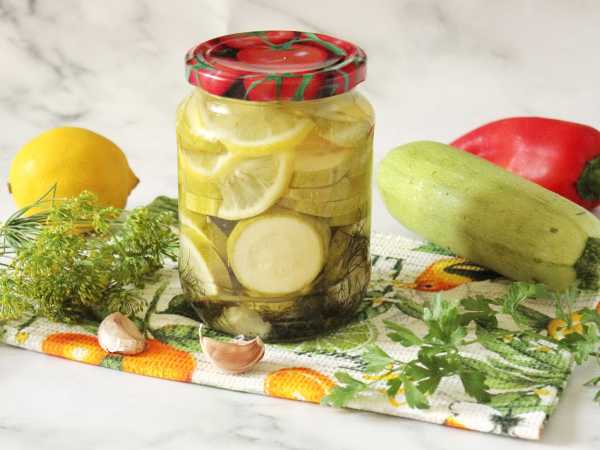 Соберите ингредиенты для приготовления маринованных кабачков с лимоном на зиму.