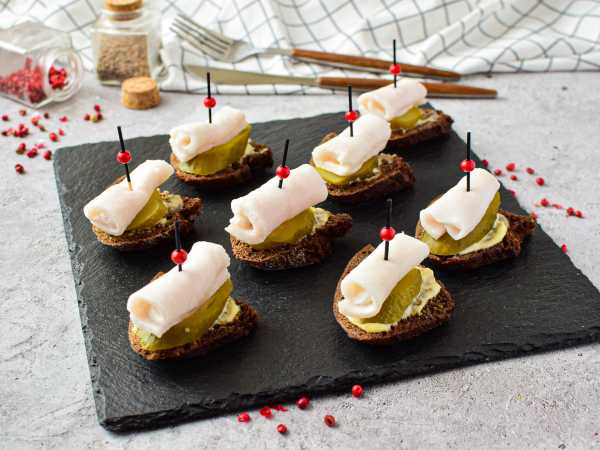 Чтобы подчеркнуть аромат и вкус любого из перечисленных ингредиентов, я рекомендую использовать ржаной или бородинский хлеб. По желанию можете смазать хлебную основу сметаной любой жирности или майонезом.