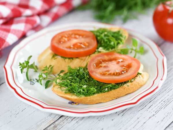 Соберите необходимые продукты для приготовления летних и ярких бутербродов с укропом и чесноком.