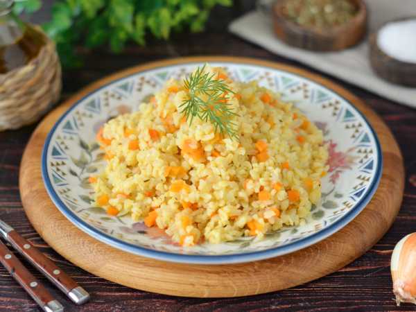 Соберите все продукты и начнём готовить булгур с морковью и луком на сковороде.