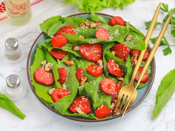 Продукты для приготовления салата с клубникой и щавелем - перед вами!