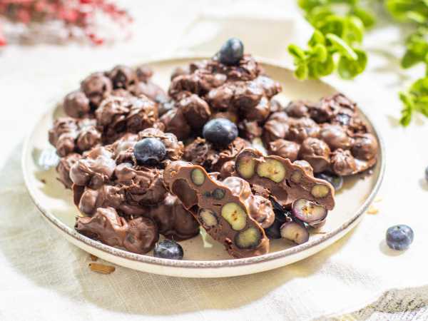 Предварительно помойте голубику и обсушите ее. Шоколад поломайте на кусочки ...