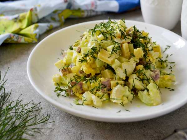 Чтобы приготовить салат «Селедка под шубой» с зеленым горошком, соберите все продукты по списку ингредиентов.