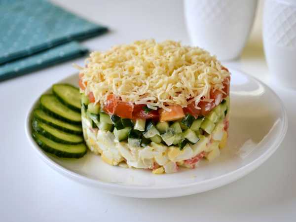 Для более нежной консистенции салата огурец можно очистить от кожуры. Нарежьте ...
