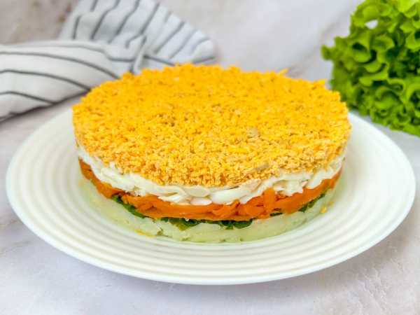 Подготовим необходимые продукты для салата «Мимоза» в форме венка. Картофель и морковь лучше заранее отварить в мундире в течение 20-30 минут, до мягкости, и оставить остыть. Свеклу также отвариваем, не ...