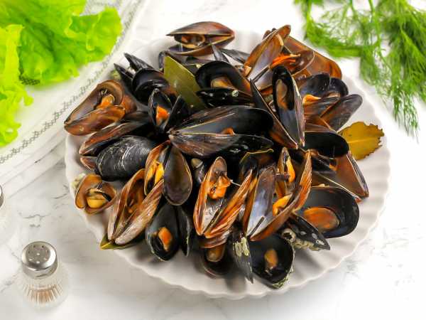 Так как у меня мидии свежие морские, а не из питомника, то по размеру они слегка уступают вторым, как в ракушках, так ...