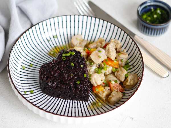 Возьмите необходимые продукты для приготовления рисовой лапши с индейкой и овощами. Лук, чеснок и морковь почистите, помойте вместе с индейкой, остальными овощами и кинзой под проточной водой, вытрите все насухо ...