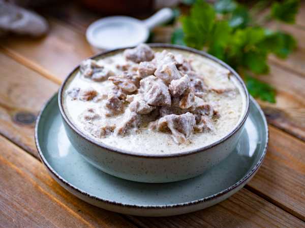 Все ингредиенты для приготовления бедра индейки в сметане на сковороде соберите по списку. Бедро индейки промойте в проточной воде.