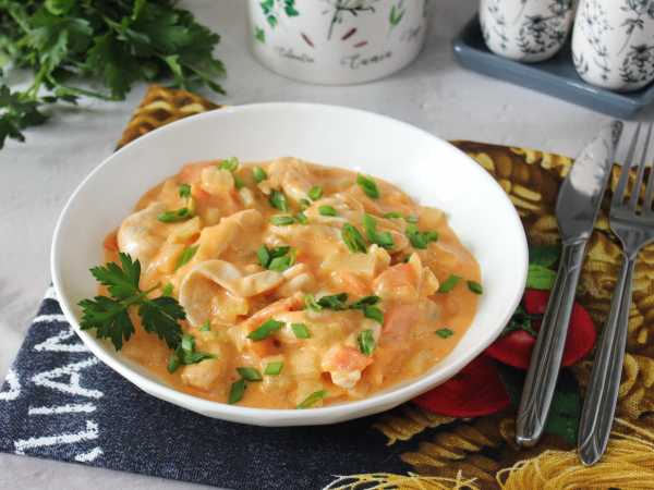 Соберите все необходимые продукты для приготовления тушеной индейки с морковью и луком на сковороде. Для этого блюда лучше брать красное мясо индейки, идеально подойдёт филе бедра, оно сочное и плотное.
