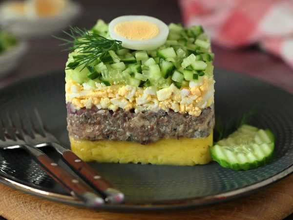 Для окрошки берётся готовый холодец. Яйца и картофель нарезаются. Редис, огурцы, хрен натираются на тёрке. Заправляется всё квасом.
