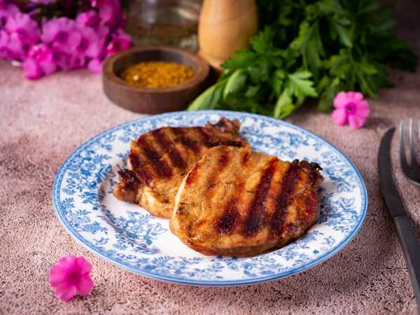 Все ингредиенты для приготовления стейков из свинины в мультипекаре соберите по списку.