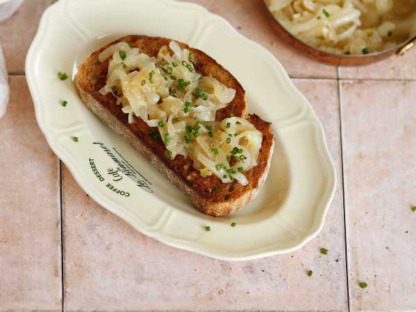 Нарежьте багет средними по толщине ломтиками. Для рецепта идеально подходит вчерашний багет - он не слишком мягкий и не сильно крошится.