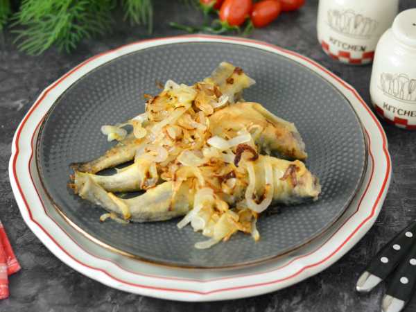 Соберите всё необходимое для приготовления жареной наваги с луком на сковороде.