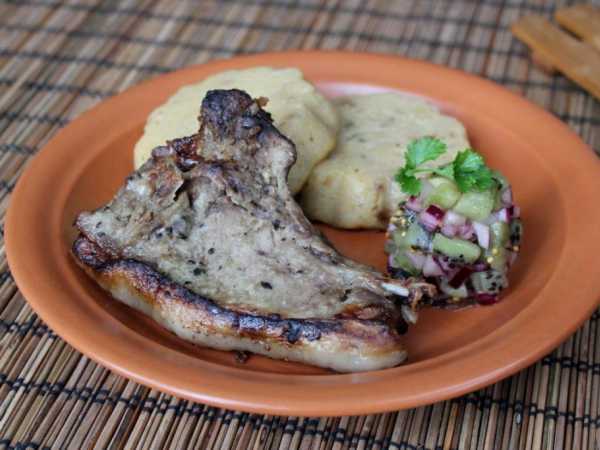 Баранья шея в виде стейков маринуется и длительное время запекается в духовке под фольгой при низкой температуре.