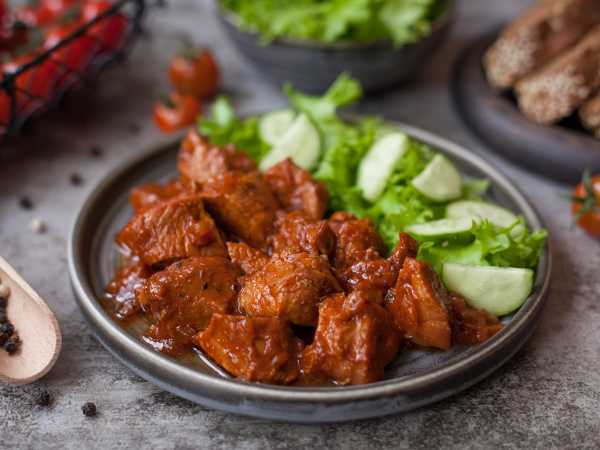 Соберите ингредиенты для приготовления тушеной свинины в пиве.