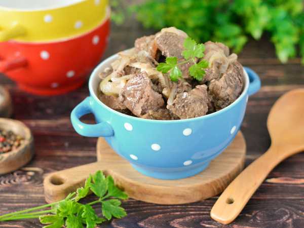 Говяжью печень промойте, срежьте пленки и сосуды, нарежьте на кусочки среднего размера. Промойте их в воде и выложите в ...