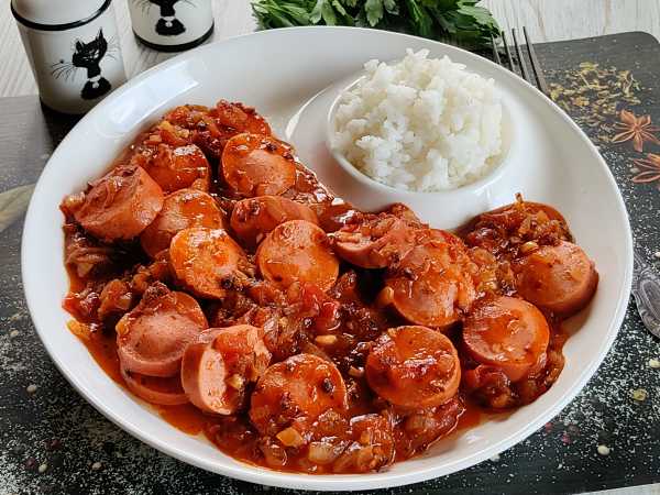 Нехитрый набор продуктов, который вам потребуется для приготовления сосисок в сметане на сковороде, представлен на фото ниже.