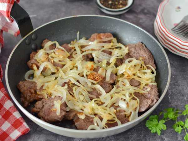 Вот тот набор продуктов, который необходим для приготовления козлятины с луком на сковороде.