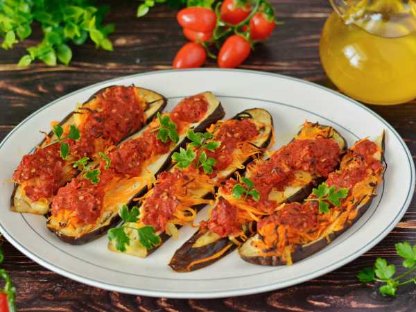Баклажан помойте и сделайте надрезы шириной 0,5-0,7 сантиметра, не доходя до конца овоща. Получается 6-7 надрезов.