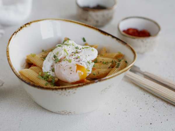 Все необходимые ингредиенты для приготовления макарон с яйцом пашот - перед вами.