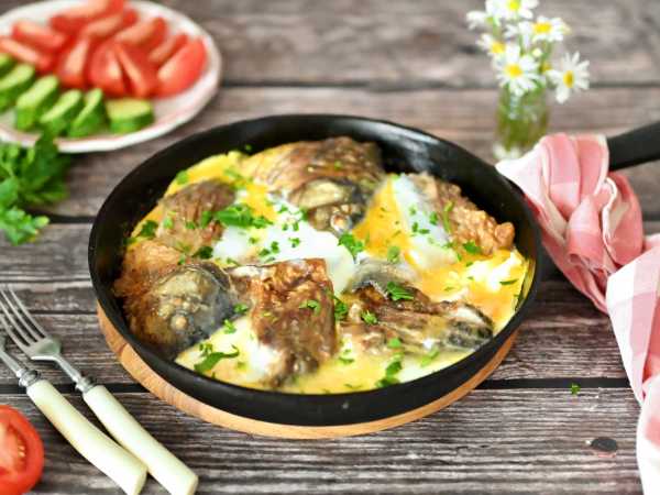 Соберите все продукты и приступим к приготовлению жареных карасей с яйцом на сковороде.