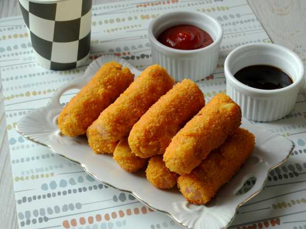 Сосиски в панировке на сковороде готовим из такого набора ингредиентов.