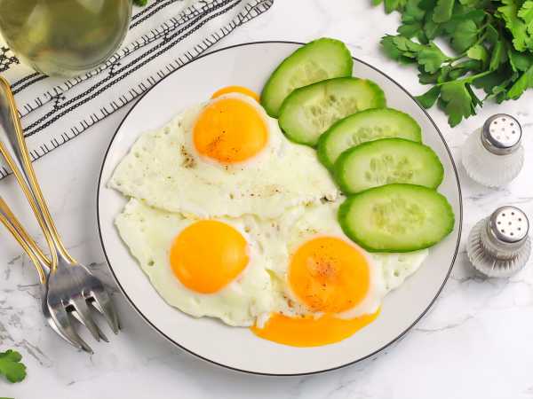 Можно использовать куриные яйца или перепелиные, утиные и т.д., но помните, что время жарки для них будет разным.