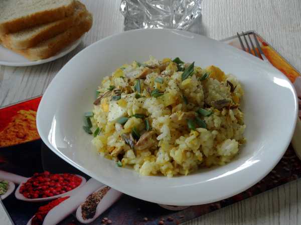 Соберите ингредиенты для приготовления грибной солянки с рисом.
