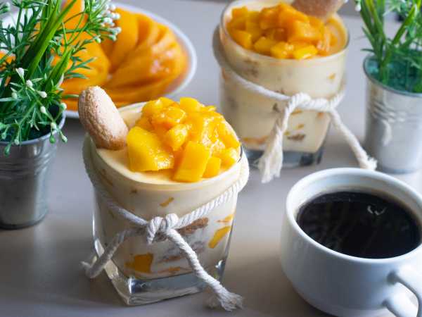 Можно придать десерту рисунок, установив бокалы под наклоном на время охлаждения.