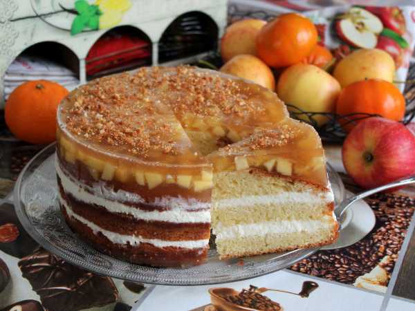 Бисквитный торт со сметанным кремом готов! Приятного аппетита.